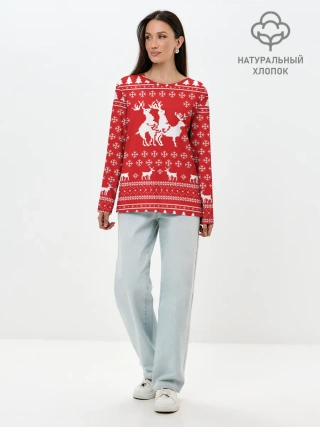 Лонгслив женский. Хлопок / СВИТЕР С ОЛЕНЯМИ
