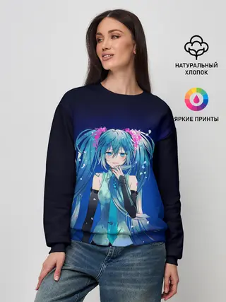 Мужской свитшот базовый / Hatsune Miku на черном фоне
