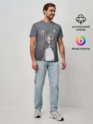 Мужская футболка оверсайз / Catgirl sadness