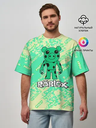 Мужская футболка оверсайз / Свинка Пигги из Roblox