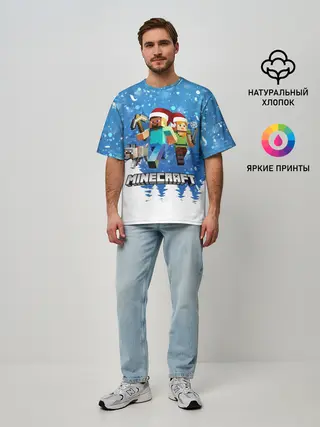 Мужская футболка оверсайз / Новогодний Манкрафт