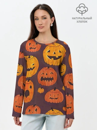 Лонгслив женский. Хлопок / Весёлые тыквы