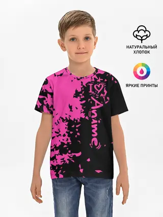 Детская базовая футболка / Love anime розовые кляксы на черном