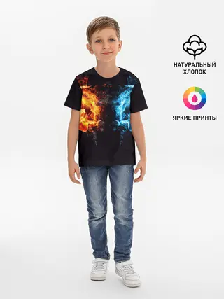 Детская базовая футболка / Абстракция,Инь-Ян,Огонь,Вода