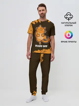Мужская пижама с брюками / КОТ - FLUFF OFF / Отвали
