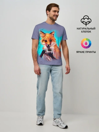 Мужская базовая футболка / Лиса с кофе