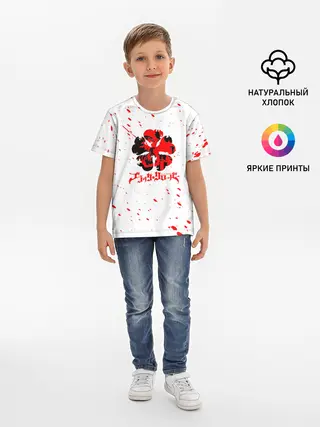 Детская базовая футболка / Логотип черный клевер с голубыми брызгами