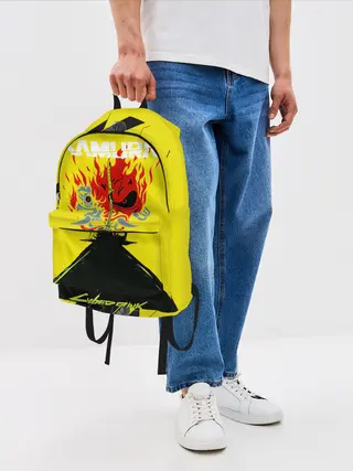 Рюкзак джинсовый / Киберпанк 2077 + Киану на спине