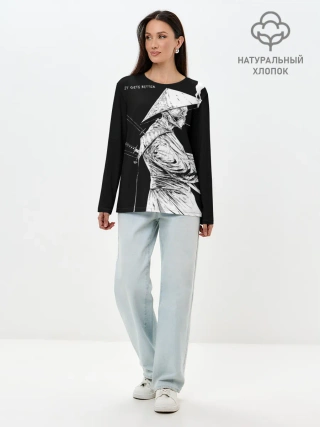 Лонгслив женский. Хлопок / Самурай скелет с трубкой