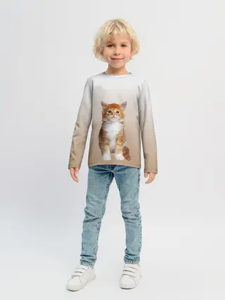 Детский лонгслив / бело-рыжий котенок реализм