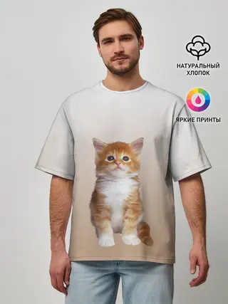 Мужская футболка оверсайз / бело-рыжий котенок реализм