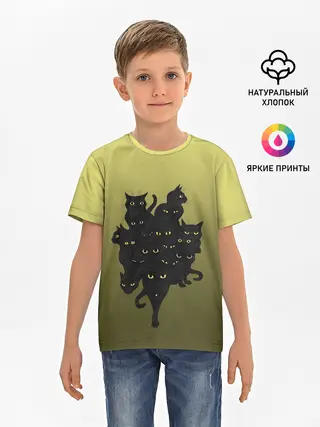 Детская базовая футболка / много черных котов