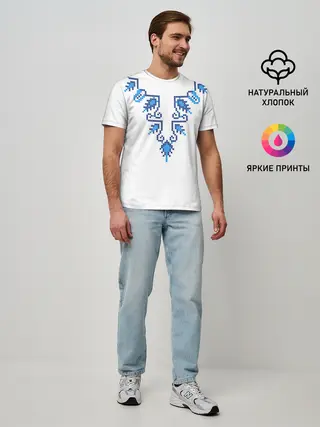 Мужская футболка оверсайз / Славянский узор сине-голубой
