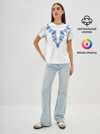 Женская футболка оверсайз / Славянский узор сине-голубой
