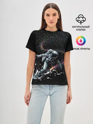 Женская базовая футболка / Космический Сёрфинг