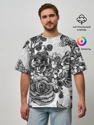 Мужская футболка оверсайз / РОЗЫ | ROSES | БАБОЧКИ