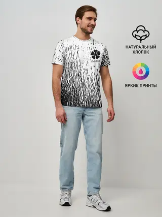 Мужская базовая футболка / Черный клевер на едко белом фоне