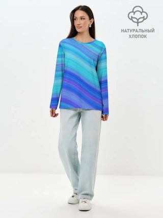 Лонгслив женский. Хлопок / Абстракция. Влны.