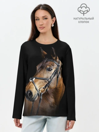 Лонгслив женский. Хлопок / Гнедая лошадь