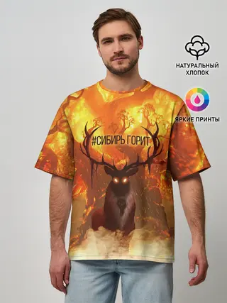 Мужская футболка оверсайз / Горящая Сибирь