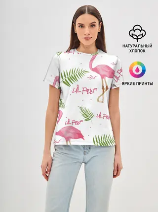 Женская футболка оверсайз / Lil Peep pink flamingo