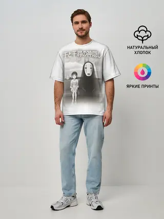 Мужская футболка оверсайз / Тихиро и Каонаси в поезде