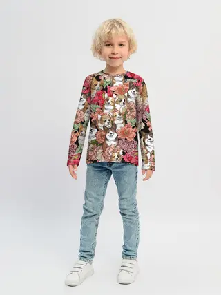 Детский лонгслив / Корги & Цветы