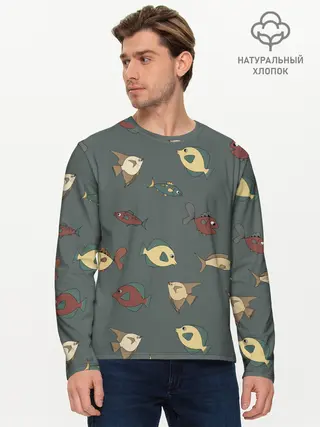 Мужской лонгслив базовый / Морские рыбки на зеленом фоне