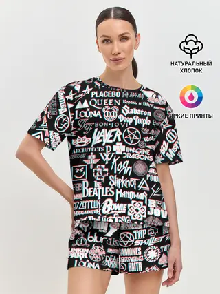 Женская пижама с шортами / ЛОГОТИПЫ РОК ГРУПП GLITCH