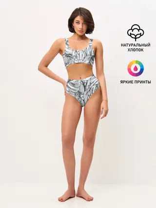 Женские топ и трусы / Тропические листья