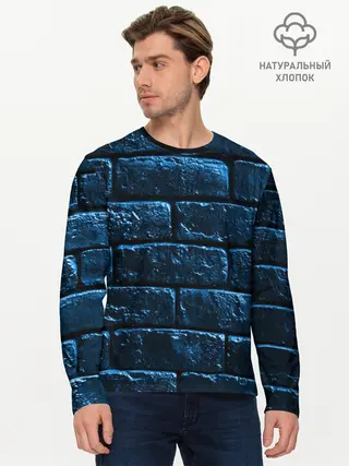 Мужской лонгслив базовый / Неоновая, кирпичная стена