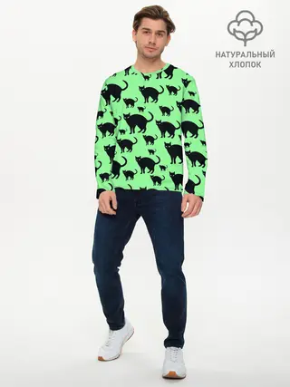 Мужской лонгслив базовый / Кошки черные