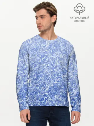 Мужской лонгслив базовый / Волны на голубом фоне
