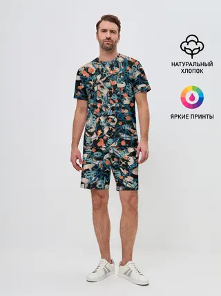 Мужские трусы с футболкой / Абстрактный сиренево-черный