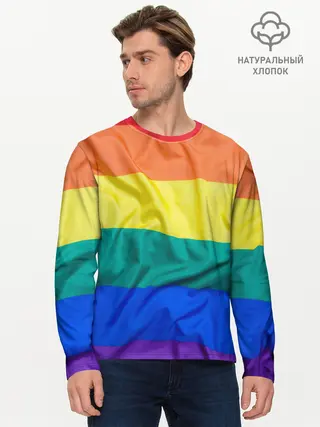 Мужской лонгслив базовый / Радуга - мятая ткань полотно