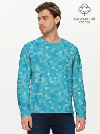 Мужской лонгслив базовый / Бирюзовая пиксель абстракция