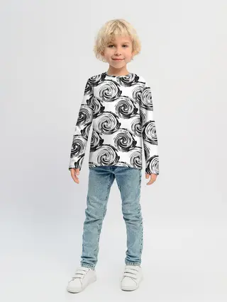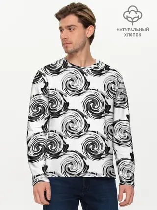 Мужской лонгслив базовый / Черно-белый абстрактный узор