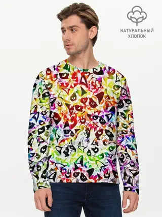 Мужской лонгслив базовый / Веселый узор из грустных котов