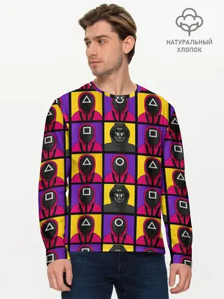 Мужской лонгслив базовый / ИГРА В КАЛЬМАРА / ОХРАНА / ВЕДУЩИЙ