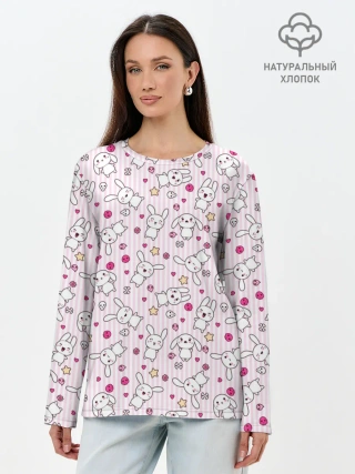 Лонгслив женский. Хлопок / Зайчики