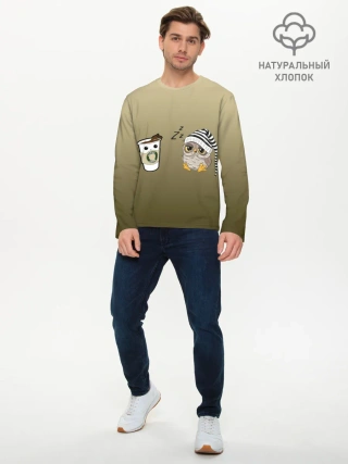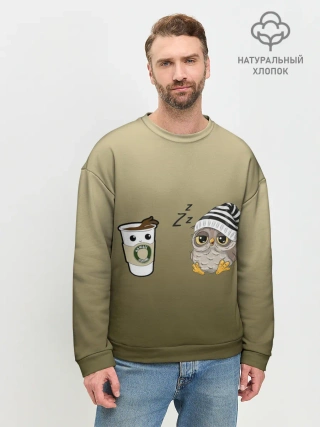 Мужской свитшот базовый / сонная сова и кофе идеальное