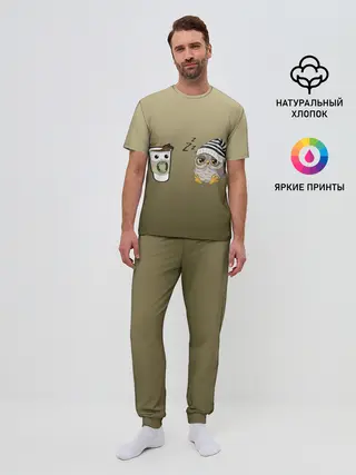 Мужская пижама с брюками / сонная сова и кофе идеальное