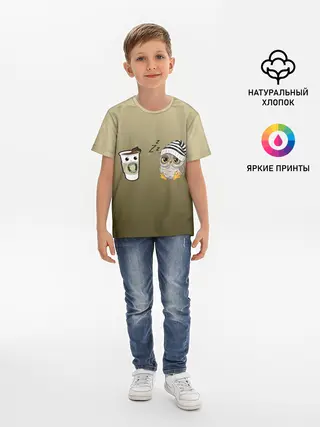 Детская пижама с брюками / сонная сова и кофе идеальное