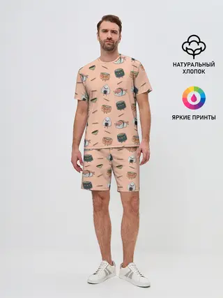 Мужские трусы с футболкой / Грибы Мухоморы паттерн