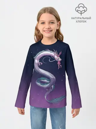 Детский лонгслив / Тихиро летает с драконом в ночном небе