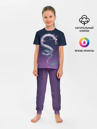 Детская пижама с брюками / Тихиро летает с драконом в ночном небе