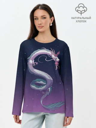 Лонгслив женский. Хлопок / Тихиро летает с драконом в ночном небе
