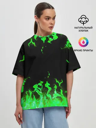 Женская футболка оверсайз / GREEN FIRE | ОГОНЬ