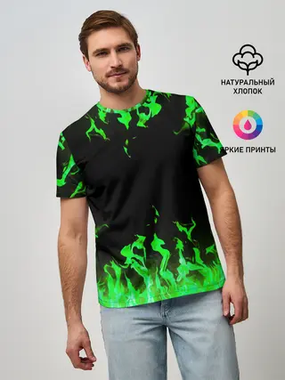 Мужская базовая футболка / GREEN FIRE | ОГОНЬ