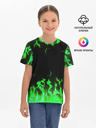 Детская базовая футболка / GREEN FIRE | ОГОНЬ